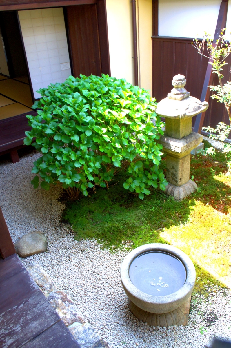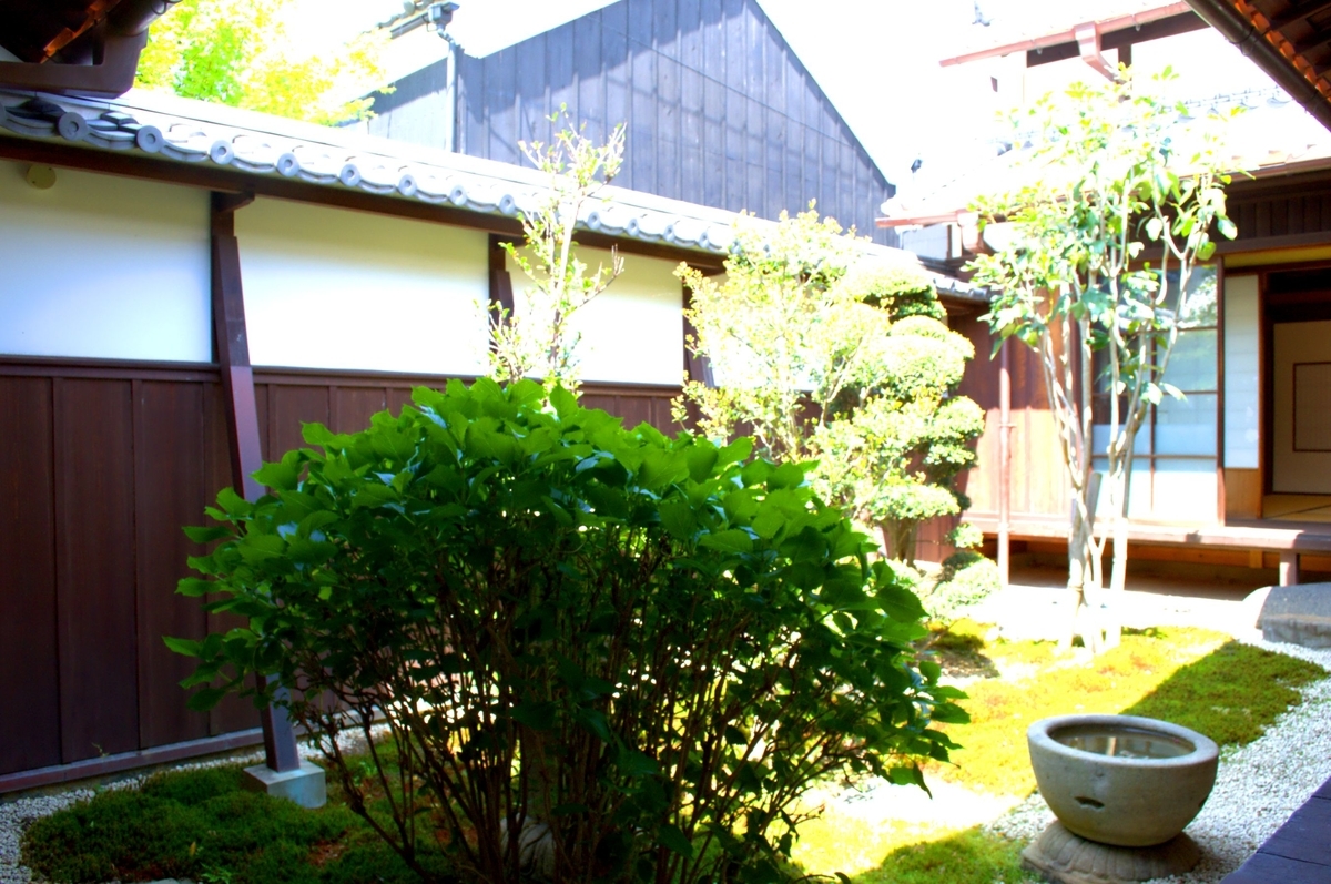 中庭は主屋と離れ座敷、そして渡り廊下に囲まれた空間に設けられています。離れ座敷、渡り廊下とも明治末期~大正期頃に建設されているので*2、その際に整備されたと考えられます。ただし、保存修理工事報告書を確認すると、絵図には飛石が描かれていますが*3、現在は確認できません。報告書には中庭は復原したとの記載もあることから*4、保存修理工事の際に整備されたと考えられます。