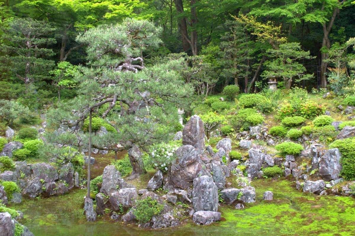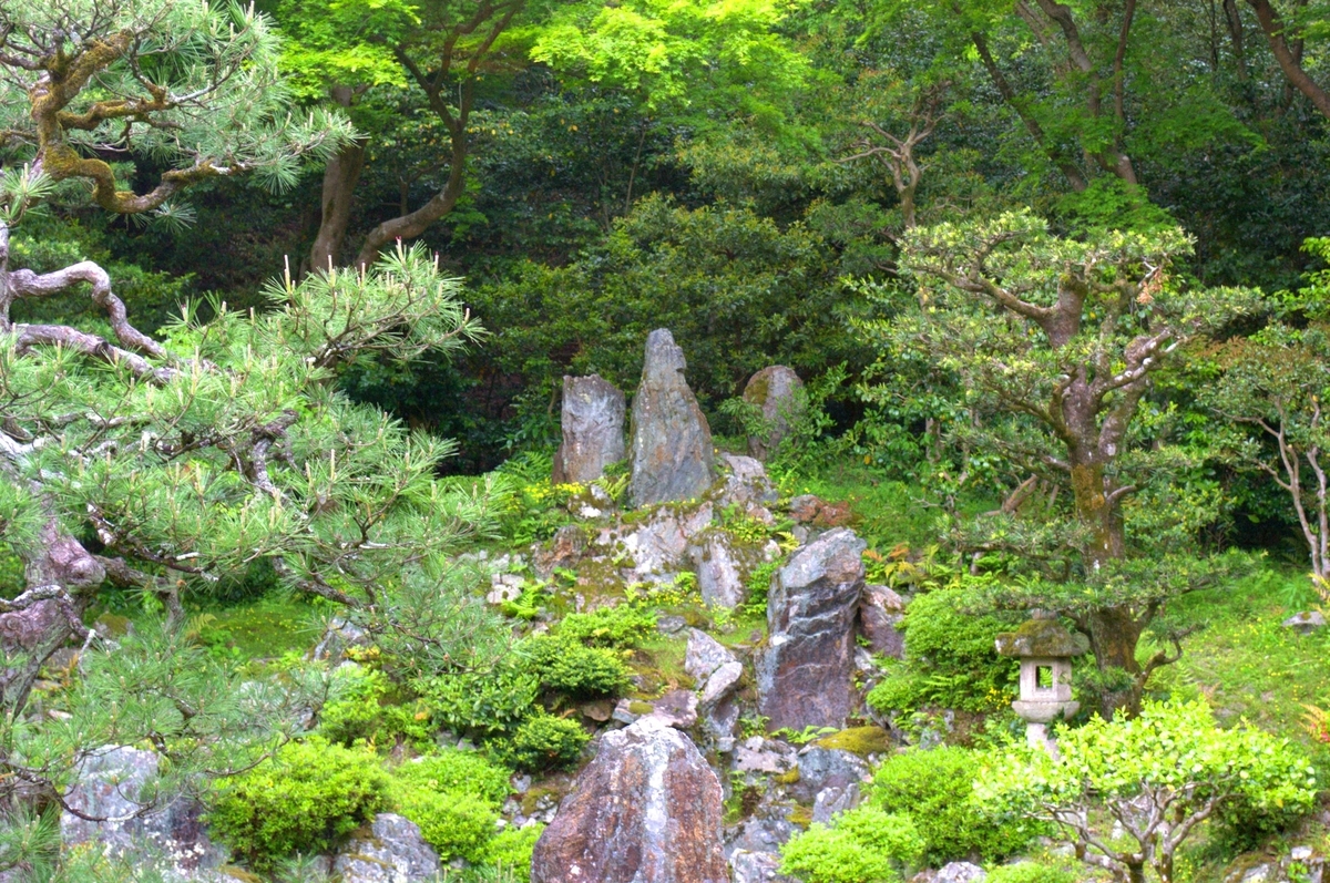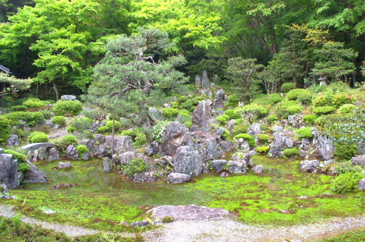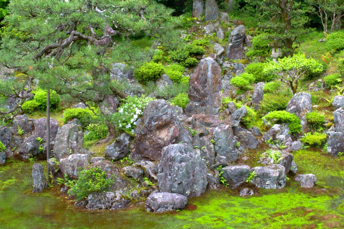 初めて訪ねた時、その美しさ、神秘さに衝撃を受けました。枯山水の庭園ではあるものの、白砂の代わりに苔を用いていることがこの庭園最大の特徴となります。