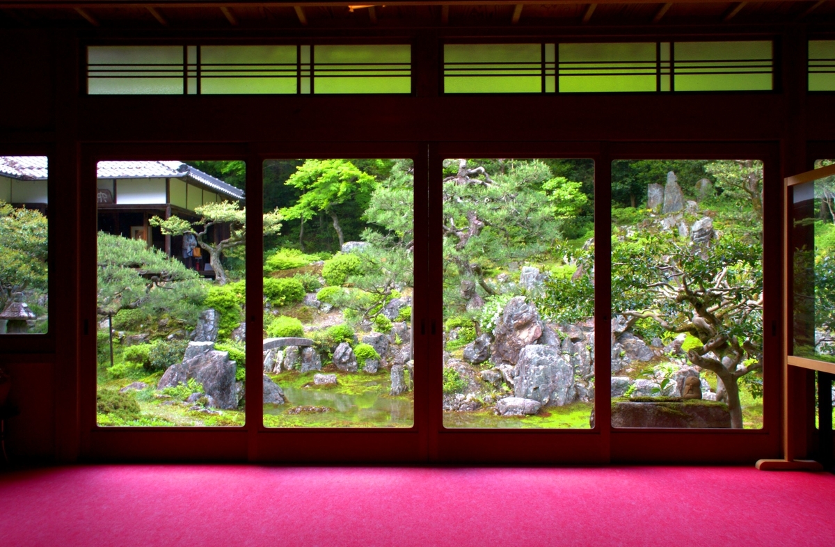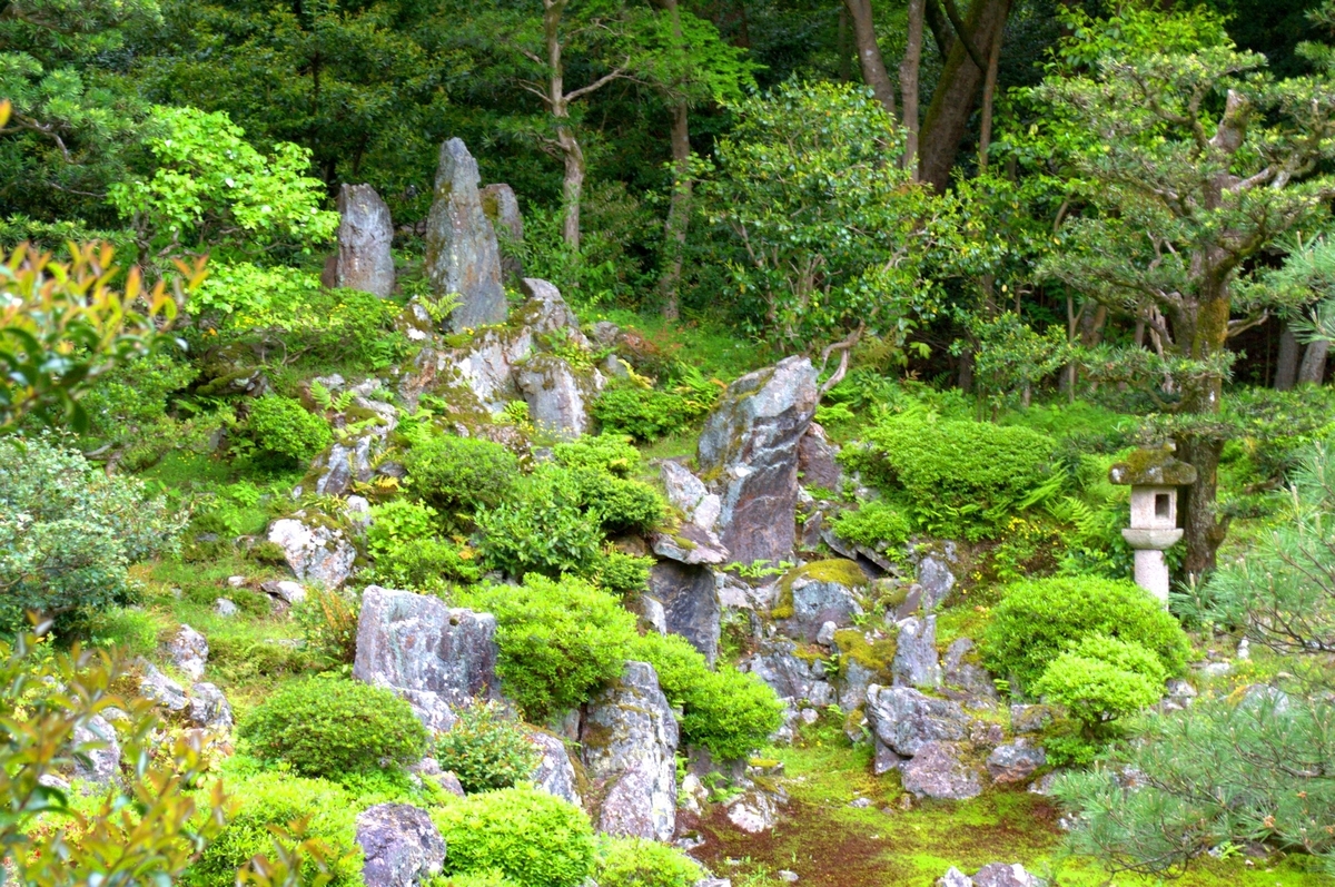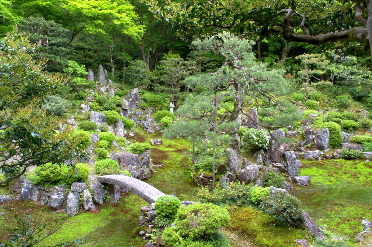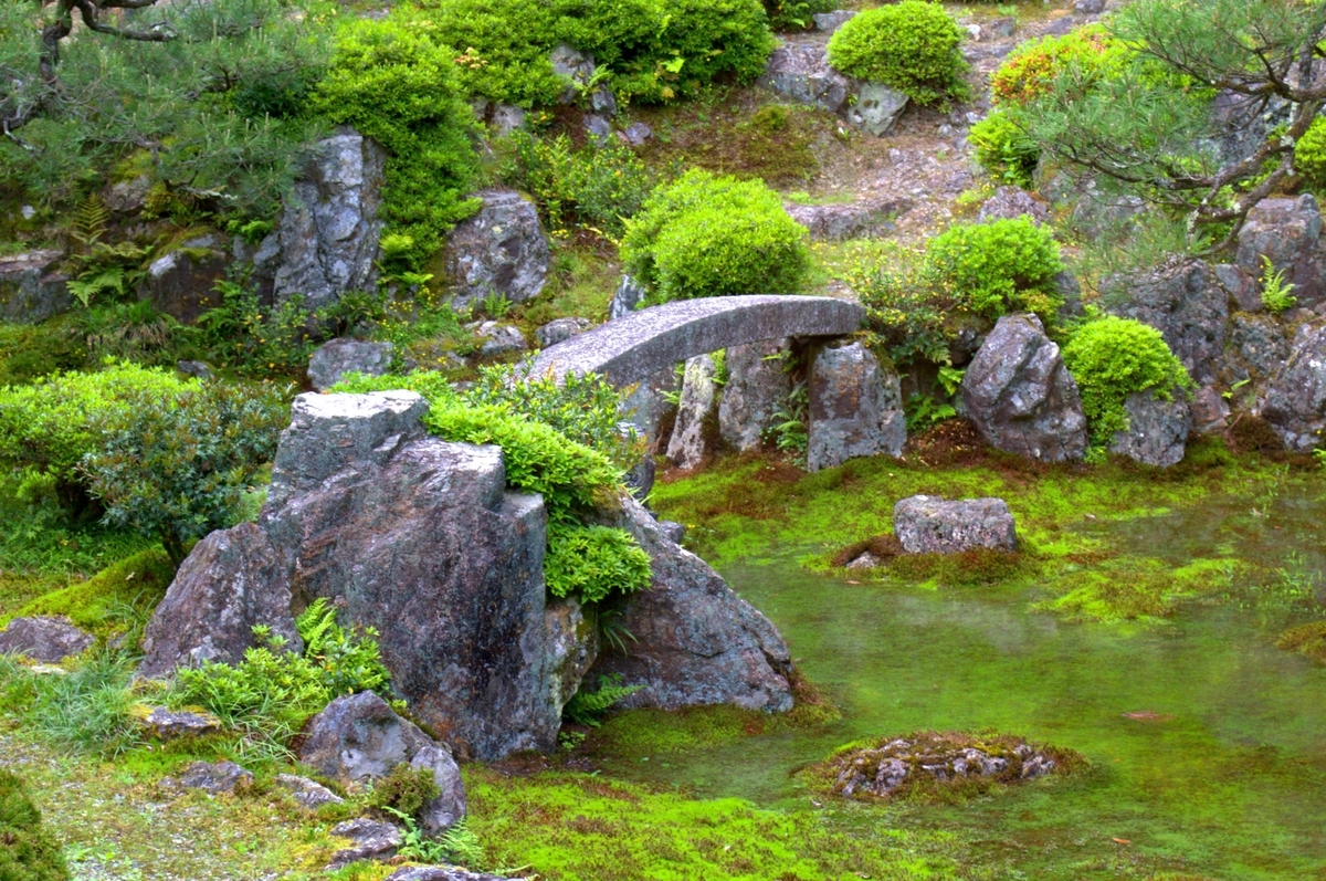 初めて訪ねた時、その美しさ、神秘さに衝撃を受けました。枯山水の庭園ではあるものの、白砂の代わりに苔を用いていることがこの庭園最大の特徴となります。