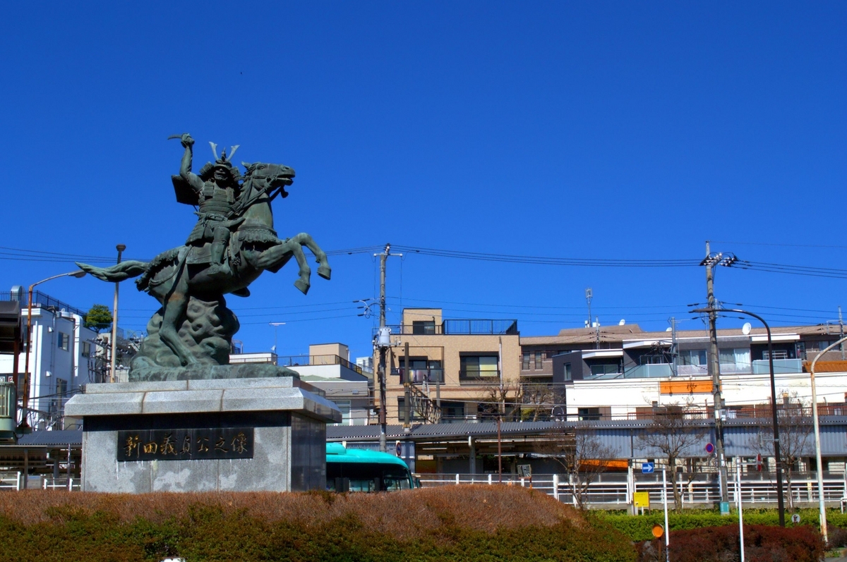 分倍河原駅前のロータリーの中に、新田義貞の像が建立されています。鎌倉時代末期、北条得宗家による支配体制を打倒すべく蹶起した新田義貞は分倍河原で激戦の末、北条軍を打ち破ります。多摩川という、鎌倉へと進撃していくことになります。ここが中世日本の転換点の舞台の一つと思うと、感慨深いものがあります。