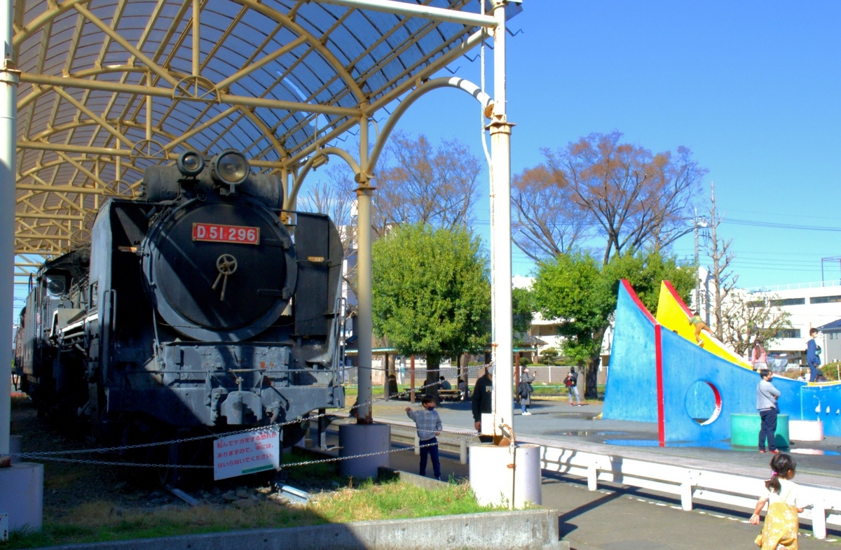 国鉄D51形蒸気機関車は、昭和11年(1936)から昭和20年(1945)までに1,000両以上製造された、日本を代表する蒸気機関車の一つです。設計は、後に東海道新幹線を主導する島秀雄氏によるもの。郷土の森公園に保存されているD51 296号機は、昭和14年(1939)に川崎車輌(現・川崎車両)が製造、秋田県や新潟県などの機関区に配属され活躍し、昭和47年(1972)に廃車、同年中にこちらで静態保存されました。