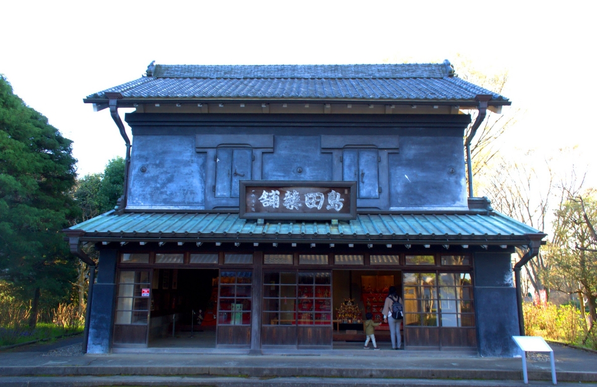 旧島田家住宅は、明治21年(1888)に建てられた店蔵です。元々は大國魂神社の数軒隣にあった薬局でした。移築前までにリフォームが施され、土壁の一部はコンクリートで補強されていましたが、柱や基礎など多くの部分で建築当時の姿で残されていることが分り移築保存されました*4。明治時代とは言え、まだまだ江戸時代の耐火建築が有効だった時代。歴史の連続性が感じられるのが良いですね。