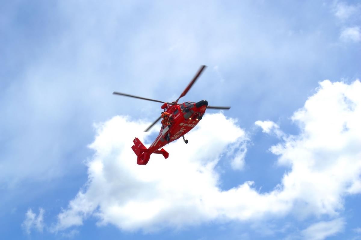 屋外では、東京消防庁の消防部隊や、米海軍所属の消防隊の消火・救助演技が行われていました。なかなか、迫力のある消火活動が繰り広げられていました。